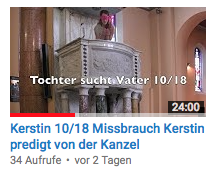 Sexueller Missbrauch Teil 10 - Kerstin sieht sich auf einer Kanzel in einer Kirche predigen. Sie stellt damit Öffentlichkeit her, auch über ihren sexuellen Missbrauch. Unten sitzt ihre Familie. Jeder soll wissen: Sie will ihren Papa. Langsam kommt Dankbarkeit in ihr hoch - auch gegenüber ihrem Stiefvater und dessen Sohn. Wir testen es, doch beide sind noch gierig auf Kerstin. Sie muß noch einmal diesen Machtkampf gewinnen. Am Ende der Session wird Aliesa in einem Sarg hereingetragen, sie kann jetzt gehen - Kerstin ist sehr berührt ...